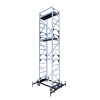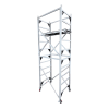 2 secciones de Andamio Multipropósito, 1 plataforma, 1 juego de barandas de seguridad y 4 ruedas de 5″ con freno.